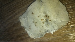 1 uur later belt hij mij op. In de hoek van het aanrecht was de parketvloer nat geworden en daaronder was de isolatielaag gaan schimmelen. Daar kwamen ze vandaan!!